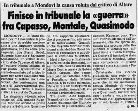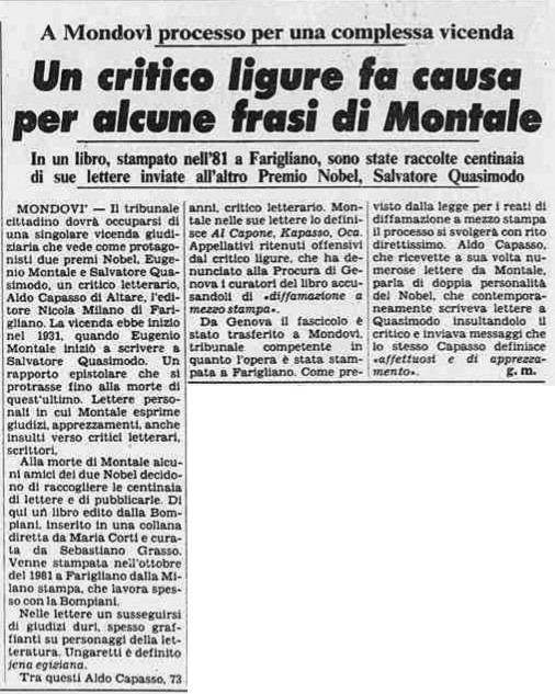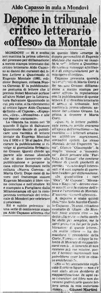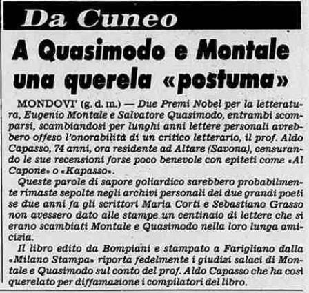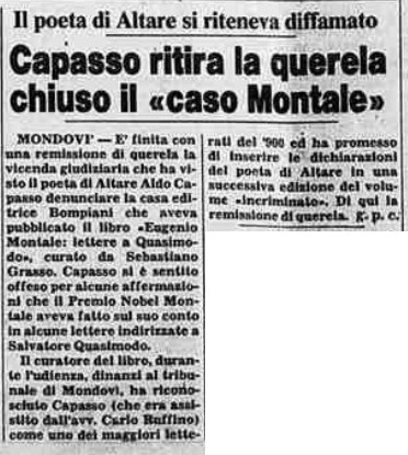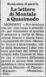 Non vi è traccia di questa corrispondenza nella biografia "Treccani" di Eugenio Montale e neanche di una seconda ristampa di tale volume, con le dichiarazioni di Aldo Capasso.
