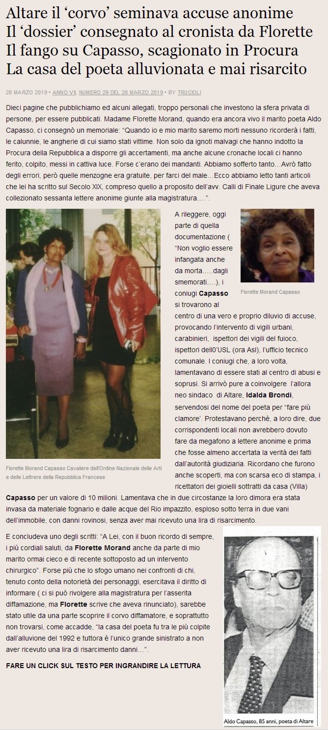 Aldo Capasso - Piovan editore - Albano TermeUna dedica all'amata musa ispiratrice d'oltreoceano Florette Morand, compare nel libro dedicato agli illustri scrittori liguri: Abba, Traversagni e Chiabrera.