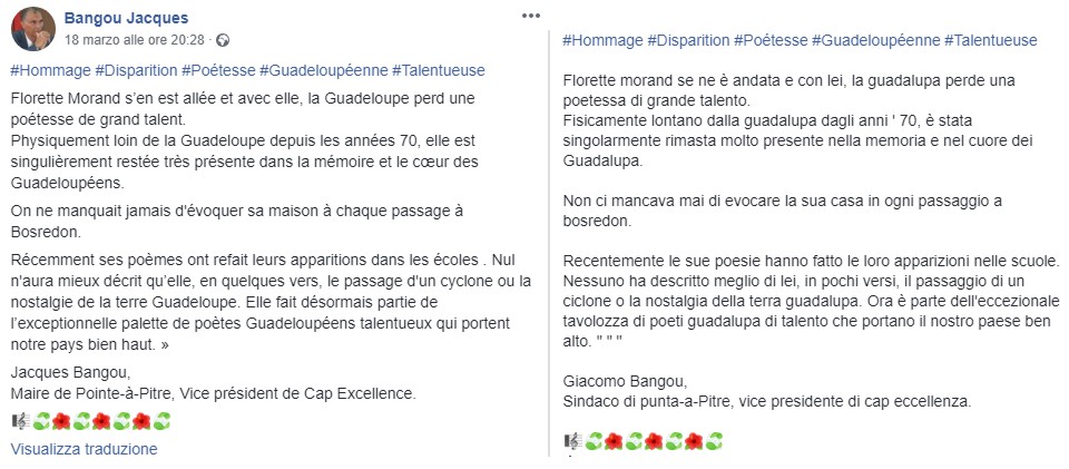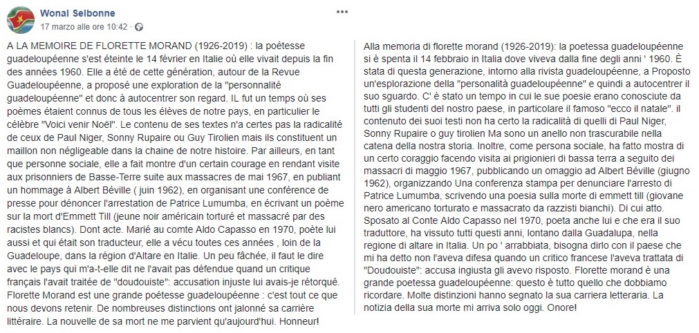 e poetessa Florette Morand (Guadalupa 1926 - Genova 2019)